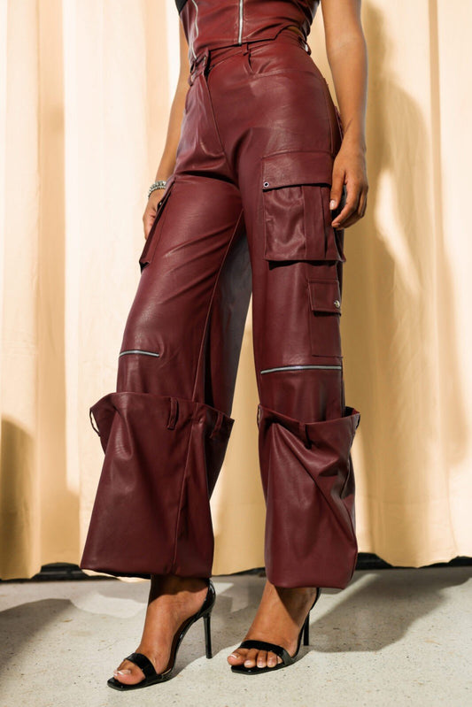 10% OFFMaroon leather co-ord set