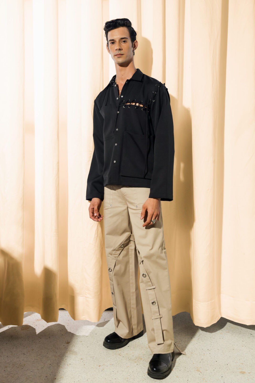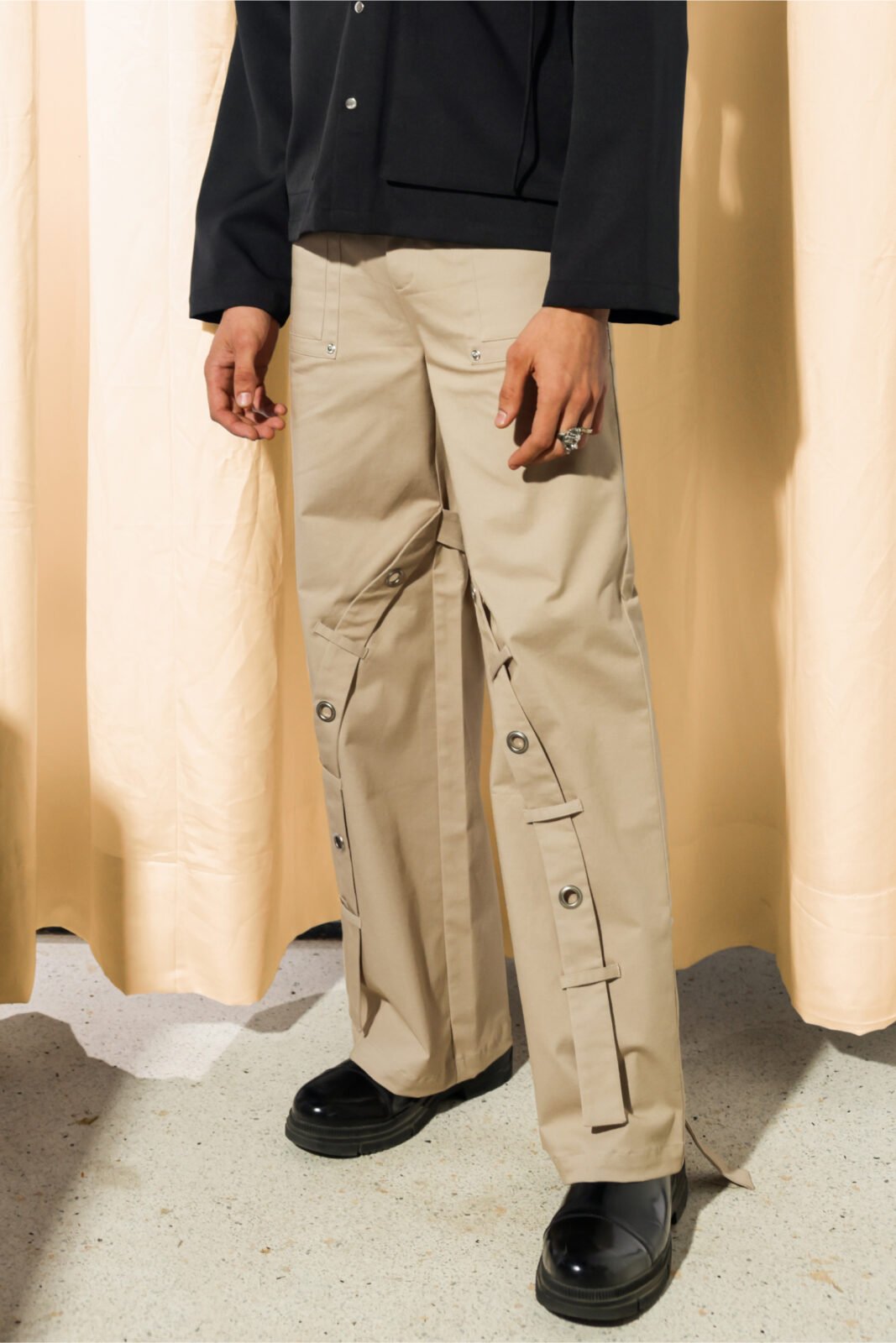 - Wide-leg with strap details
